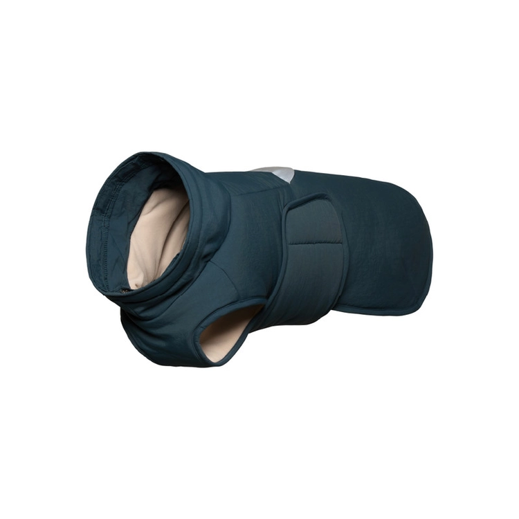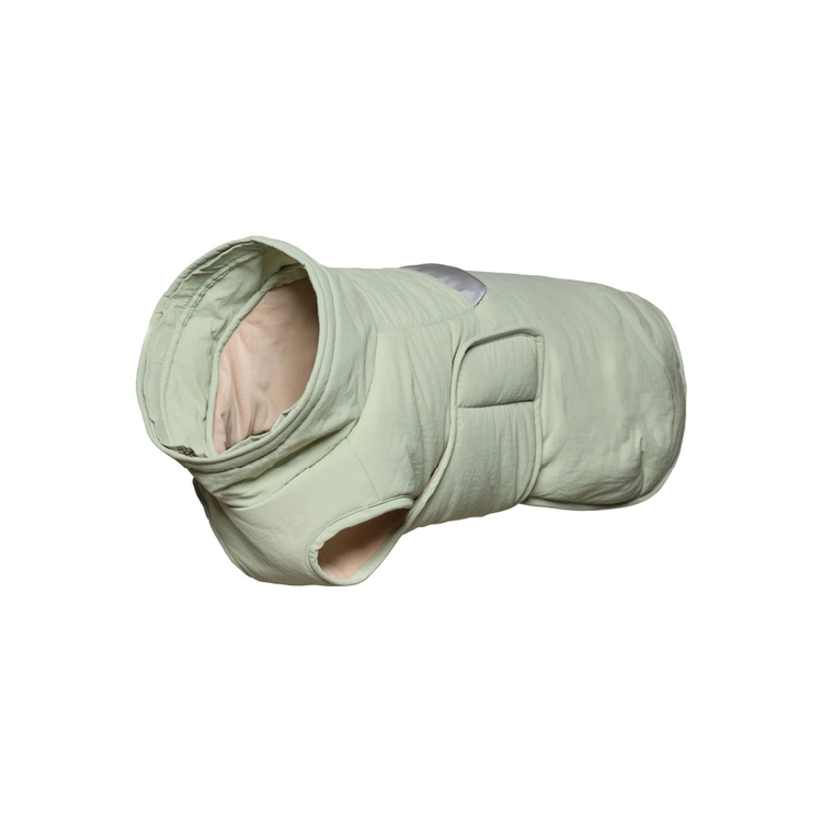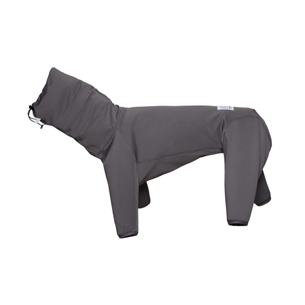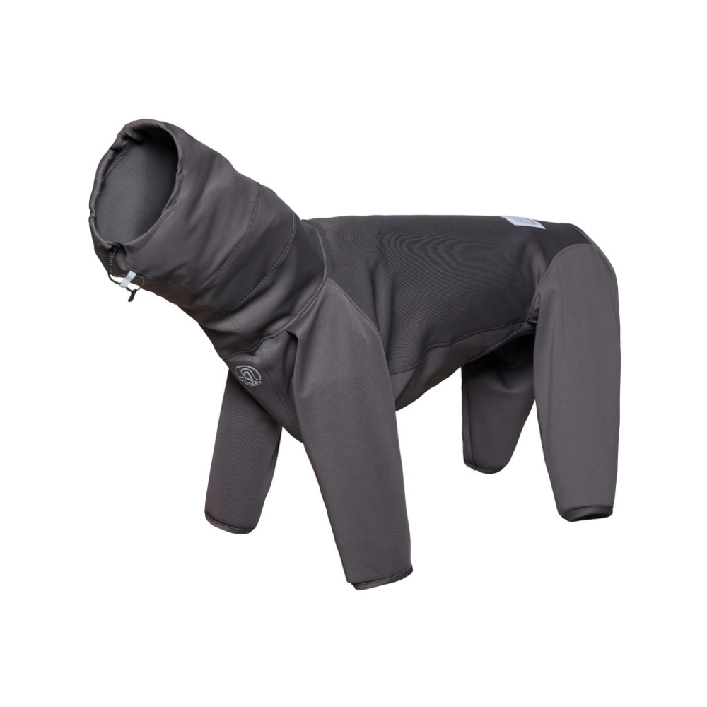以功能性發熱布料製成的冬季連身衣,從頭到腳溫暖包覆狗狗的全身。